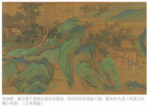 和神國,雖然還不是神仙居住的福地,但民風習俗相當不錯。圖為明 仇英《長夏江村圖》局部。(公有領域)