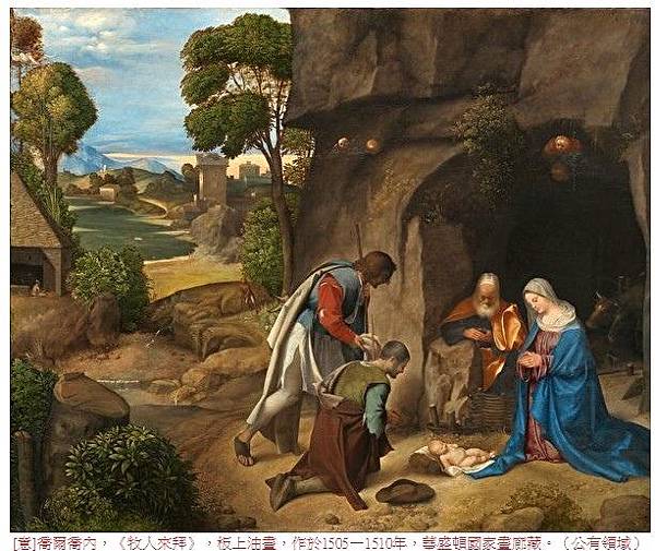 [意]喬爾喬內,《牧人來拜》,板上油畫,作於1505—1510年,華盛頓國家畫廊藏。(公有領域)