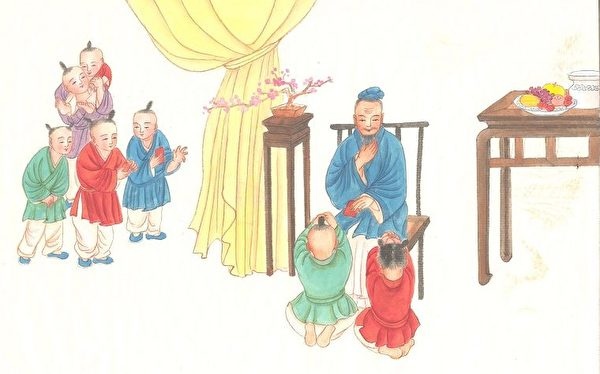「壓歲」諧音「壓祟」,壓歲錢帶著鎮壓邪祟的吉祥含意。長輩給晚輩壓歲錢,注入了「平平安安度過一歲」的愛護心意。(章翠英《古風》/大紀元)