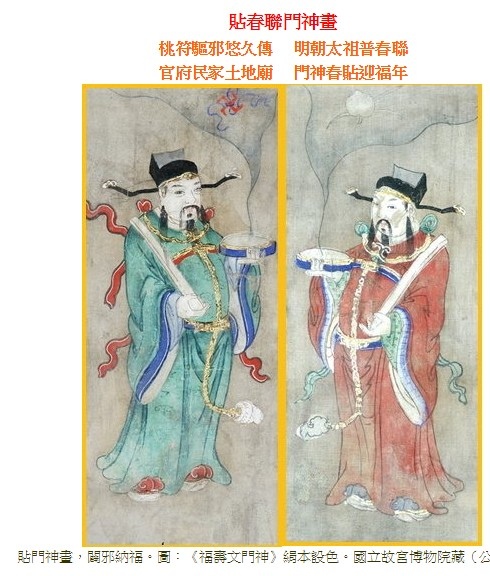 貼門神畫,闢邪納福。圖:《福壽文門神》絹本設色。國立故宮博物院藏(公有領域)