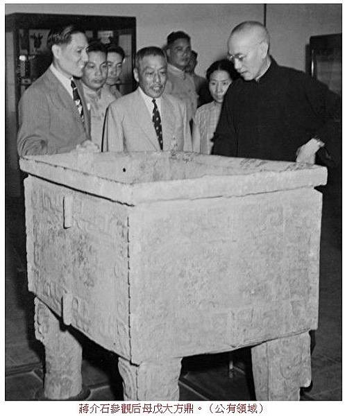 蔣介石參觀后母戊大方鼎。(公有領域)