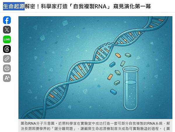 生命起源解密!科學家打造「自我複製RNA」 窺見演化第一幕 - 蒐奇 - 自由時報電子報