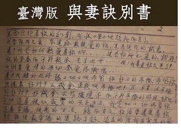 台灣回憶探險團》臺灣版「與妻訣別書」 - 自由電子報 自由評論網 - https://goo.gl/F5aYTL