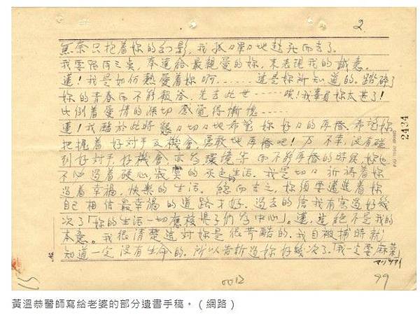 黃溫恭醫師寫給老婆的部分遺書手稿。(網路)