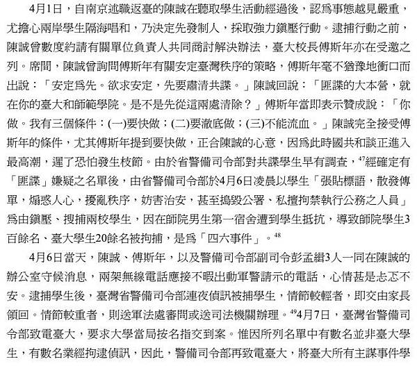 其實自由主義者傅斯年是支持以反共為名的軍警逮捕學生行動。