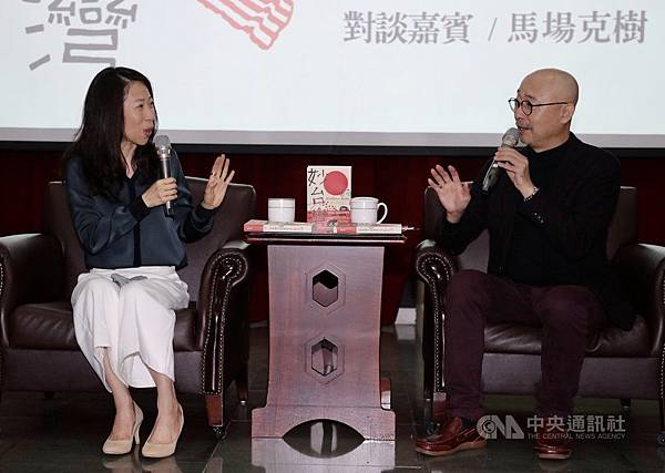 出身基隆顏家的台裔日本作家一青妙(左)3日在台北出席「妙台灣-溫柔聯繫台日的觀察者」新書分享會,與前日本外交官、目前定居台灣的知名音樂人、演員兼專欄作家馬場克樹(右)對談,分享2人所觀察到的台灣印象。中央社記者張皓安攝 108年11月3日