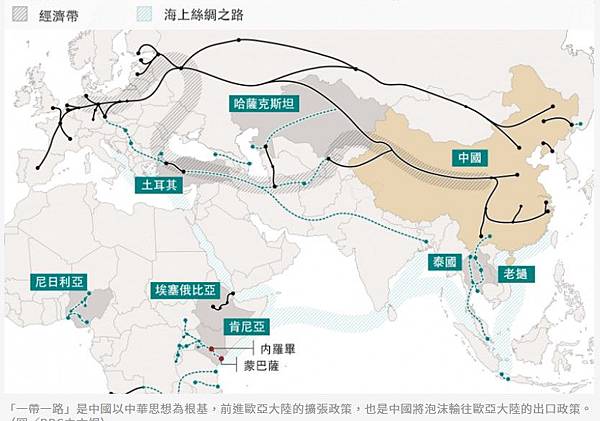 「一帶一路」是中國以中華思想為根基,前進歐亞大陸的擴張政策,也是中國將泡沫輸往歐亞大陸的出口政策。(圖/BBC中文網)