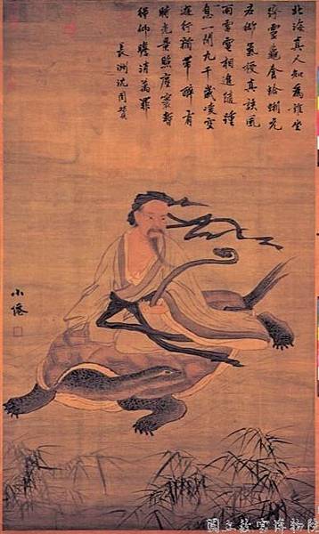 神仙乘靈龜,持如意,凌空飛去。明代吳偉《北海真人像》(國立故宮博物院藏)