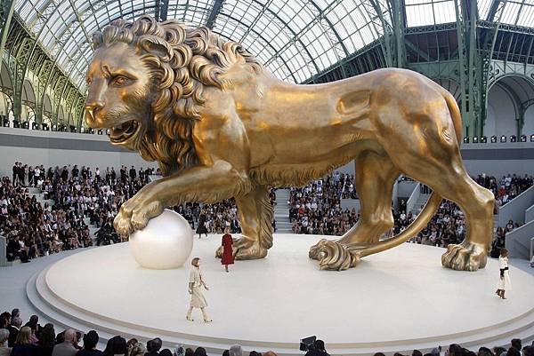 去年10月的巴黎時裝周,拉格斐把海洋沙灘搬進巴黎大皇宮,模特兒赤著腳踏著白沙走秀。2017年,拉格斐把大皇宮改造成火箭發射基地,大型的N°5火箭就擺放在秀場中央。