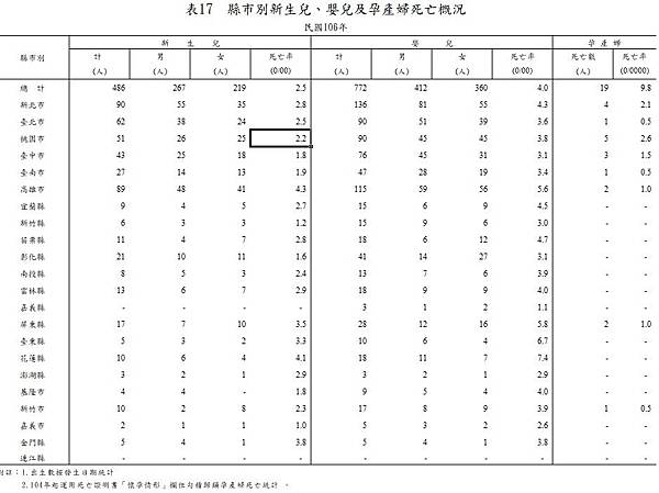 3.1-03_嬰兒與孕產婦死亡數及死亡率各縣市死亡概況- 統計處 - https://goo.gl/q92mAE
