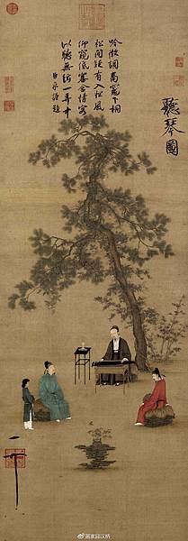 《聽琴圖》,北宋,趙佶(傳),絹本設色,橫147.2釐米,縱51.3釐米,現藏於北京故宮博物院