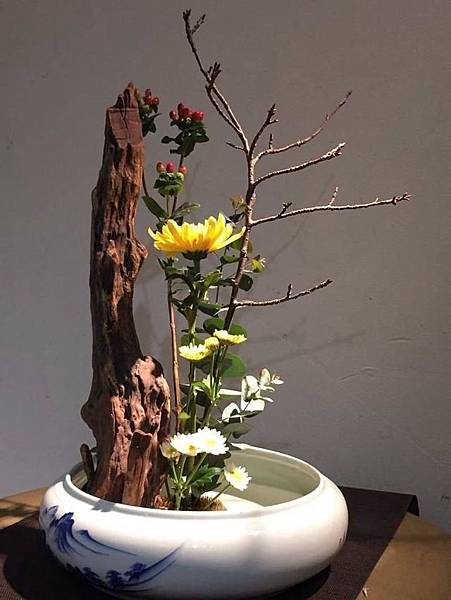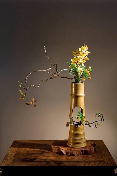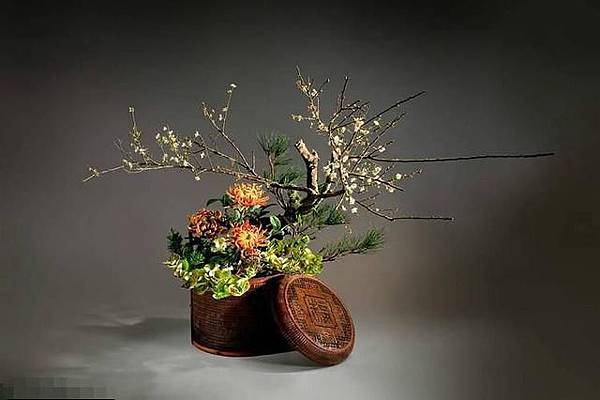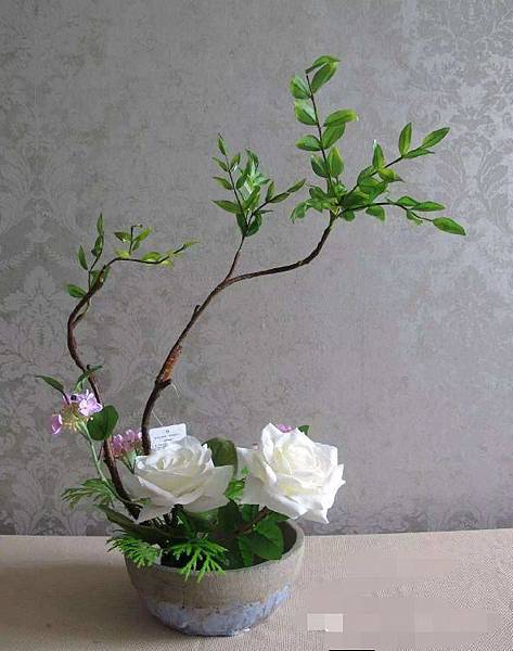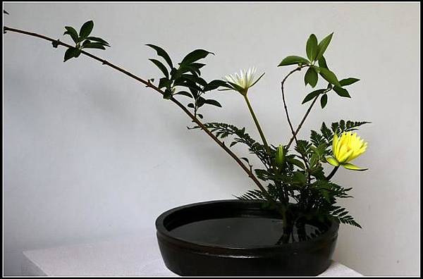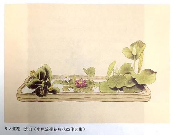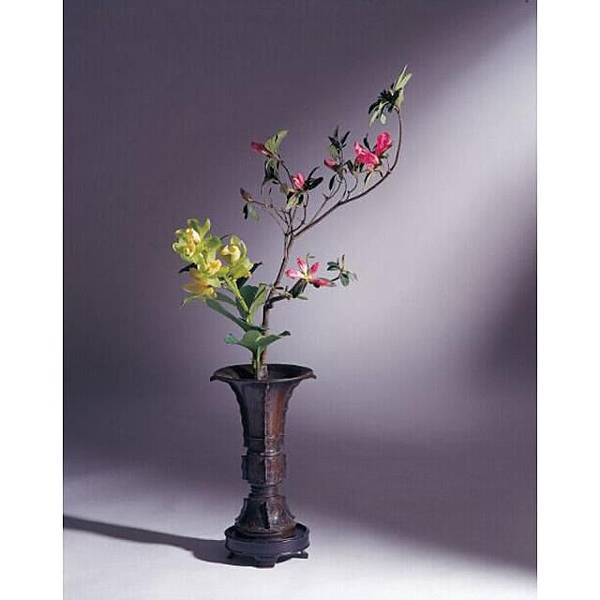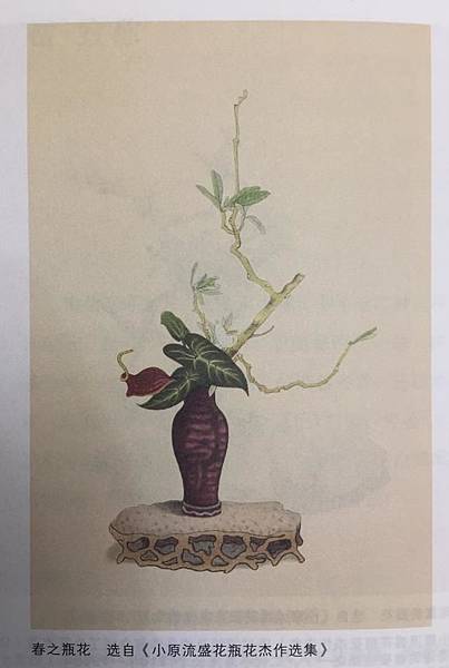 瓶中最多插兩、三個品種,造型要求高低錯落,疏密有致,如同一幅線條、色彩和主題都很協調統一的繪畫,這便是最佳意境。(中國人獨特的審美情趣,雖出人工,取法自然)