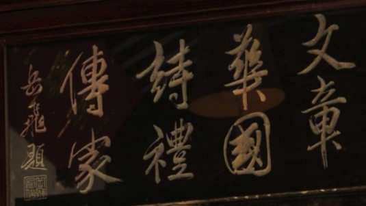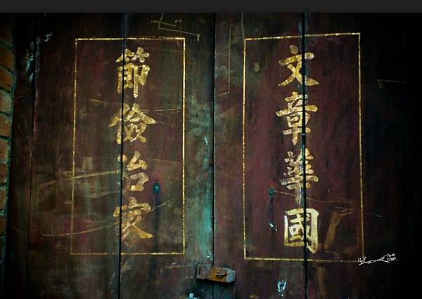 牌匾上的印章左右文字為"文章華國"。是〈星鵬書院〉主人的高堂祖上爺爺到子的四代輩序