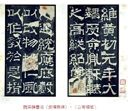 魏梁鵠書法《受禪表碑》。(公有領域)