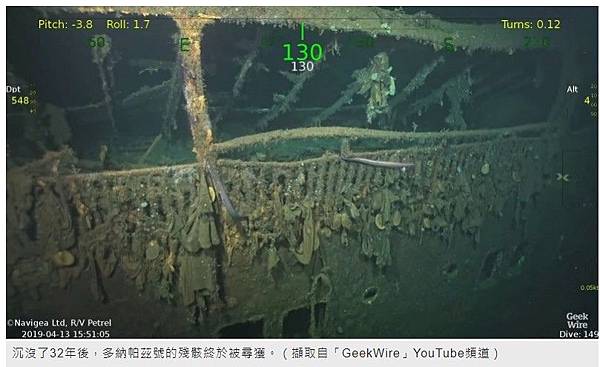 沉沒了32年後,多納帕茲號的殘骸終於被尋獲。(擷取自「GeekWire」YouTube頻道)