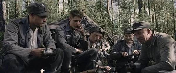 4, 機槍連的 Koskela 在撤退時,為了把受傷的同伴帶回去,要所有人把機槍拋入湖中(我覺得還蠻實際的,因為亂丟會被敵軍撿去用,丟到湖裡敵軍就不會知道)。不過一位傷兵就要4個人扛,加上地形變化大,觀賞這段時總會讓人思考,不管怎麼做都不會是最好的選擇。