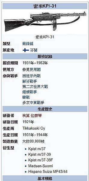 精度最高的果然還是瑞士鐘錶啊……芬蘭曾購買少量SIG MKMS衝鋒鎗,蘇聯拿來測試的說不定就是冬季戰爭期間繳獲的。