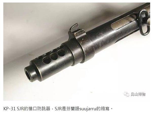 4、芬蘭軍隊近半數的KP-31配備槍口防跳器,定型為KP-31 SJR。但是,一般認為這個槍口裝置的效果並不理想,反而會降低槍枝可靠性、提高生產成本、加大生產難度。