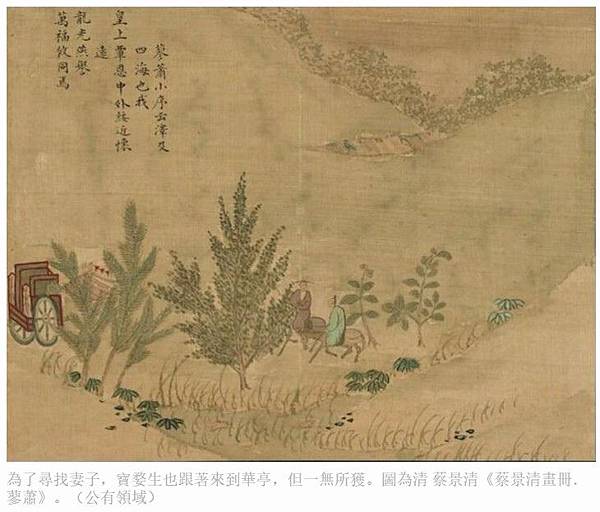 為了尋找妻子,寶婺生也跟著來到華亭,但一無所獲。圖為清 蔡景清《蔡景清畫冊.蓼蕭》。(公有領域)