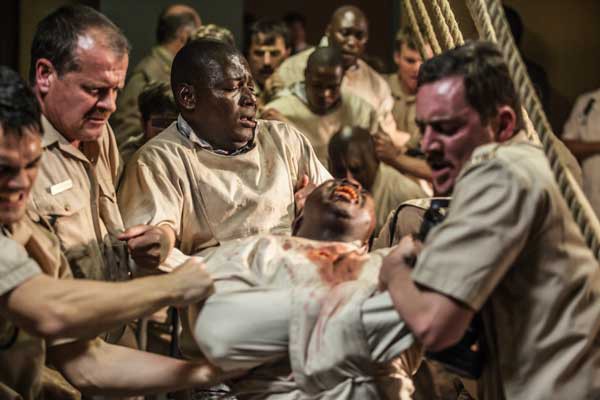 「框!」地板門應聲打開,7名死刑犯瞬間下墜,死刑犯瞬間被吊死,獄警接著負責解下、沖洗遺體,入殮並載到墓地掩埋。在當時的南非,執行死刑的頻率非常密集,更曾有一年高達167人,期間並未有任何相關的心理評估與心理輔導,更無所謂的「適性評估」。