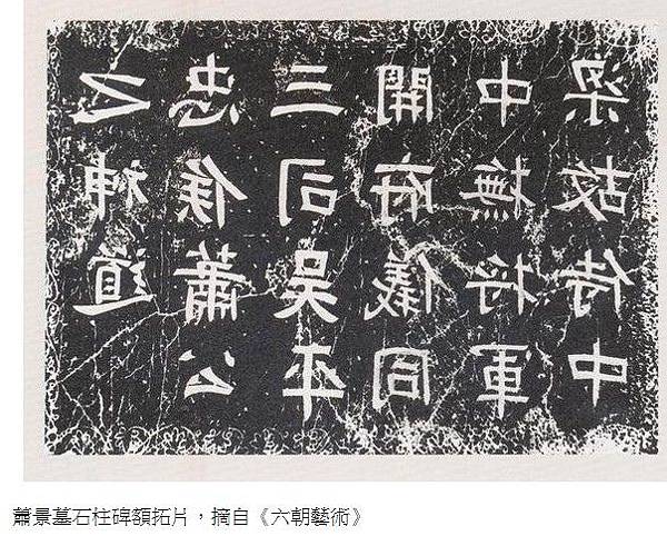 蕭憺墓東側石碑碑額拓片,摘自《六朝藝術》