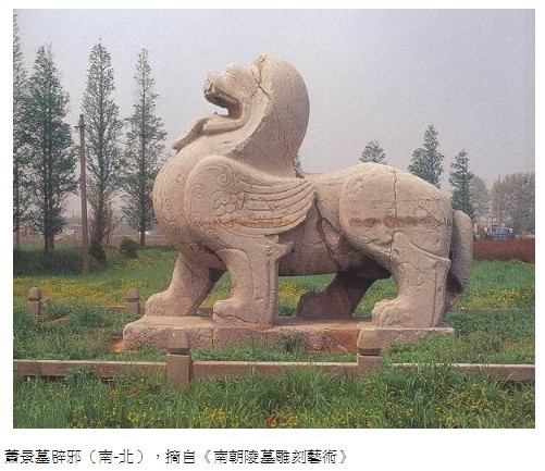 蕭景墓辟邪(南-北),摘自《南朝陵墓雕刻藝術》