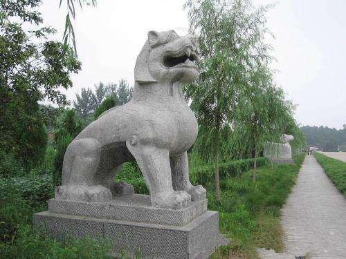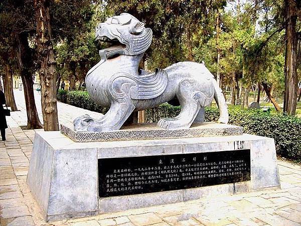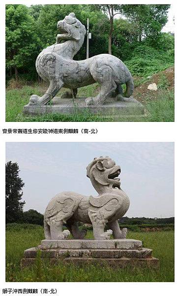 五、帝陵前有角石獸為麒麟;王侯墓前無角石獸稱獅子。