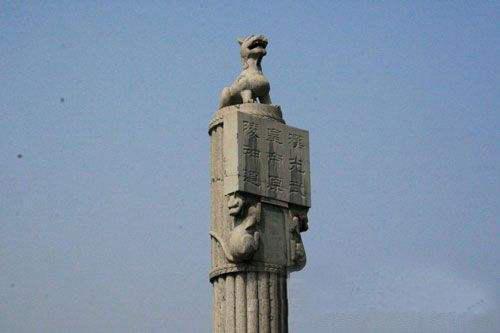 望柱,傳說源於堯舜時代的「誹謗木」,又稱「表」。墓地神道旁邊的叫「墓表」,宮殿附近的稱「華表」。一般在粗大的石柱上會放一蹲著的小石獸,這個小石獸叫「犼」,這字讀hǒu,傳說是一種似狗而吃人的北方野獸,因為朝天上望,俗稱「望天犼」。為什麼望住柱要用這種獸呢?意在提醒君王勤政。
