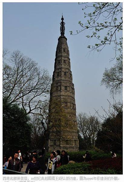 西湖名勝保俶塔,10世紀吳越國國王錢弘俶初建,圖為1996年修建後的外觀。(Siyuwj/維基百科)