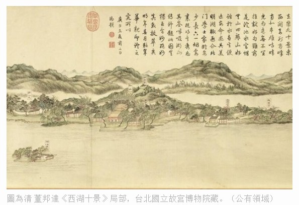 圖為清 董邦達《西湖十景》局部,台北國立故宮博物院藏。(公有領域)
