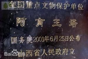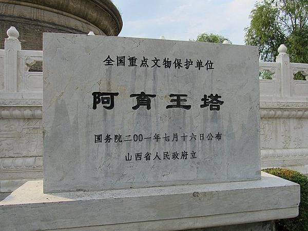 阿育王塔,俗稱白塔,省級重點文物保護單位,現存阿育王塔坐落在山西省忻州市代縣縣政府後院內。始建於隋仁壽元年(601年),原為木結構,稱"龍興",唐宋幾經廢興。金興定二年(1218年)元兵南下時,州人舉火焚燒,元至元十二年(1275年)改建為磚塔至今。代縣現存阿育王塔600年間歷遭三劫。元世祖忽必烈至元12年,改建為穩健挺拔的造型和磚雕的印度"陀羅彌經",使其成為藏式佛塔中的佳作。