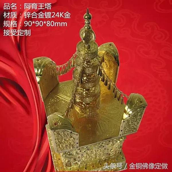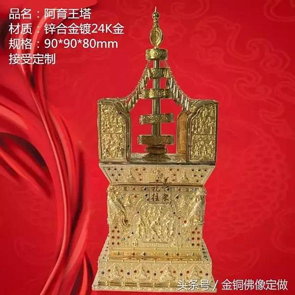 這座塔,全稱是「鎏金七寶阿育王塔」,高1.1米,周40公分,總重量約為100斤,是國內及全世界範圍內發現的、已知的規格最大的一尊阿育王塔,被譽為「世界阿育王塔之王」。