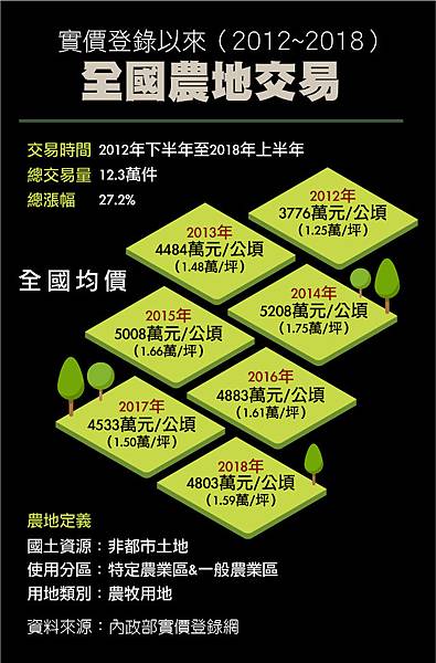 (新調查中心何柏均、侯良儒、陳偉周、陳鼎仁、林奐成、吳宜靜/調查報導)【鑽石田1】全台農地爆漲3倍 土地淪金錢遊戲 | 蘋果日報 - https://goo.gl/MLvxPd
