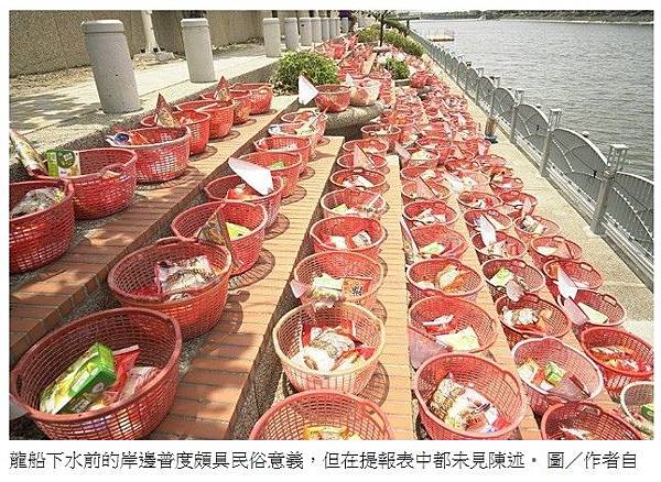 龍船下水前的岸邊普度頗具民俗意義,但在提報表中都未見陳述。 圖/作者自攝