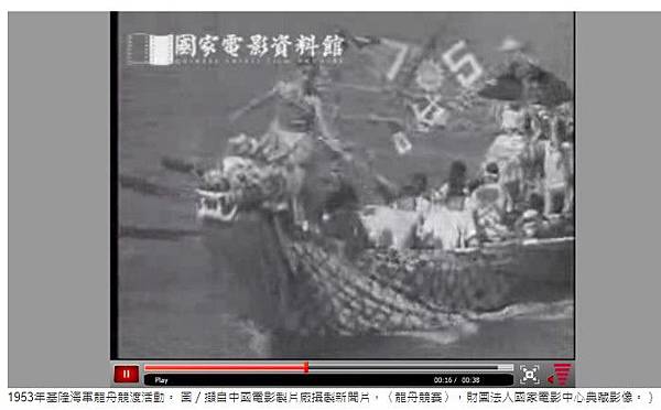 1953年基隆海軍龍舟競渡活動。 圖/擷自中國電影製片廠攝製新聞片,〈龍舟競賽〉,財團法人國家電影中心典藏影像。)