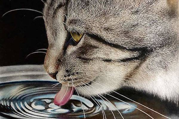 《貓咪喝水色鉛筆畫》逼真到就跟照相機拍出來的照片一樣 - https://goo.gl/aqoWKA