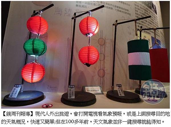 當然,隨著科技及通訊的進步,天文氣象觀測也不斷演變,在5樓的「氣象歷史展示」區內,不同時代的觀測儀器、台灣第一張天氣圖…都能在這裡看到,有興趣的人,不妨預約一趟上知天文、下知地理的導覽。80年前看到這燈籠 請趕快回家保平安 - https://goo.gl/kPdrq3