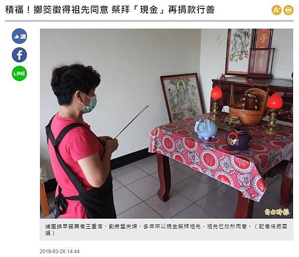 分享積福!擲筊徵得祖先同意 祭拜「現金」再捐款行善到Facebook 分享積福!擲筊徵得祖先同意 祭拜「現金」再捐款行善到Line