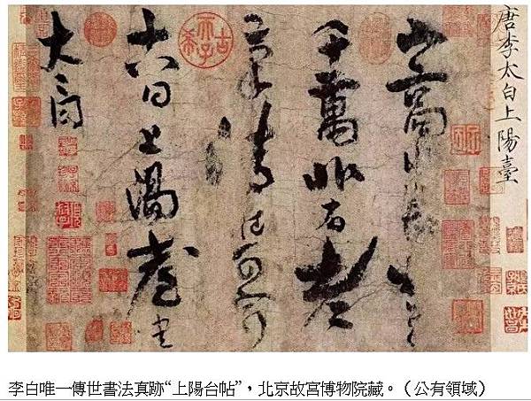 李白唯一傳世書法真跡“上陽台帖”,北京故宮博物院藏。(公有領域)