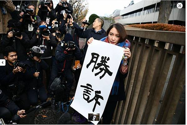 日本自由記者伊藤詩織18日在東京地方法院外,向記者舉起「勝訴」標語。伊藤狀告TBS電視台前華府支局長山口敬之性侵,對她造成精神創傷,要求賠償1100萬日圓的損害賠償,東京地方法院判決勝訴,山口應賠償330萬日圓。法新社 MeToo運動是小題大作嗎?我們該如何看待「自警行為」? | 陳紫吟 / 獨評讀好書 | 獨立評論
