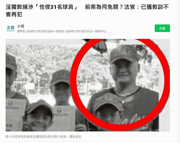 淫魔教練涉「性侵31名球員」 前案為何免關?法官:已獲教訓不會再犯 | 太報 | LINE TODAY https://bit.ly/40sJ3mR