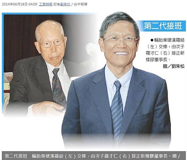 全球第九大輪胎廠正新橡膠昨(17)日召開股東常會,並改選董監事;高齡90歲、人稱輪胎業「硬漢」的正新董事長羅結交棒,不再續任董座;新任董事長,由羅結次子─羅才仁接任,並兼正新中國董事長,正式啟動正新第二代接班。