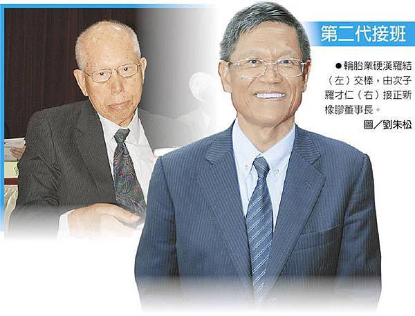 第二代接班 輪胎業硬漢羅結(左)交棒,由次子羅才仁(右)接正新橡膠董事長。圖/劉朱松