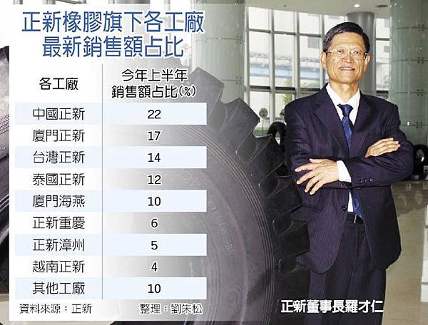 正新屹立台灣輪胎產業超過50年,全球行銷超過180個國家,被稱之為「黑色甜甜圈」的輪胎,也成為羅結一生中最大的驕傲。(編輯:趙蔚蘭)1080319