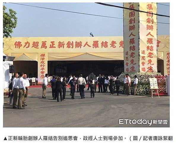 ▲正新輪胎創辦人羅結告別追思會,政經人士到場參加。(圖/記者唐詠絮翻攝)