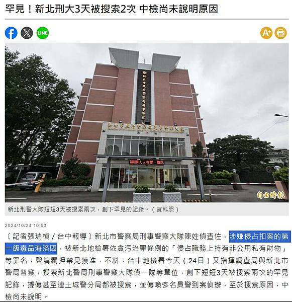 罕見!新北刑大3天被搜索2次 中檢尚未說明原因 - 社會 - 自由時報電子報