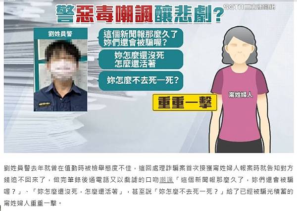 諷婦遭詐「怎不去死」 起底毒舌警!屢遭檢舉記大過 | 社會 | 三立新聞網 SETN.COM