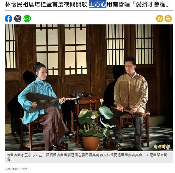 林懷民祖厝培桂堂首度夜間開放 王心心用南管唱「愛拚才會贏」 - 生活 - 自由時報電子報