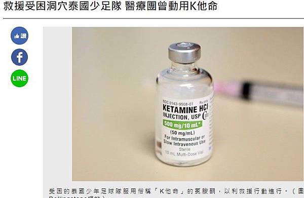 分享救援受困洞穴泰國少足隊 醫療團曾動用K他命到Facebook 分享救援受困洞穴泰國少足隊 醫療團曾動用K他命到Line