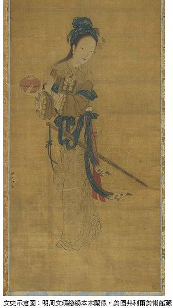 文史示意圖:明周文靖繪絹本木蘭像,美國弗利爾美術館藏。(公有領域)